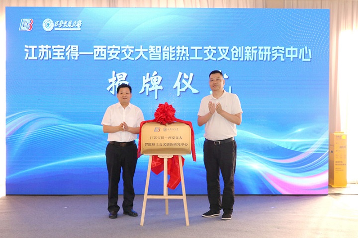 黃忠德與季震為“江蘇寶得—西安交大智能熱工交叉創新研究中心”揭牌。